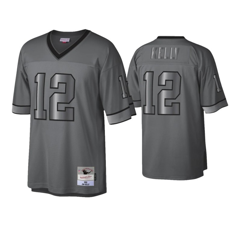 Cheer on the Buffalo Bills in the new season with this Buffalo Bills #12 Jim Kelly Charcoal 1990 Metal Legacy Retired Player Jersey. Fearuing your team and player graphics, no one will be able to doubt what team and player you're pulling for when you put on this jersey!