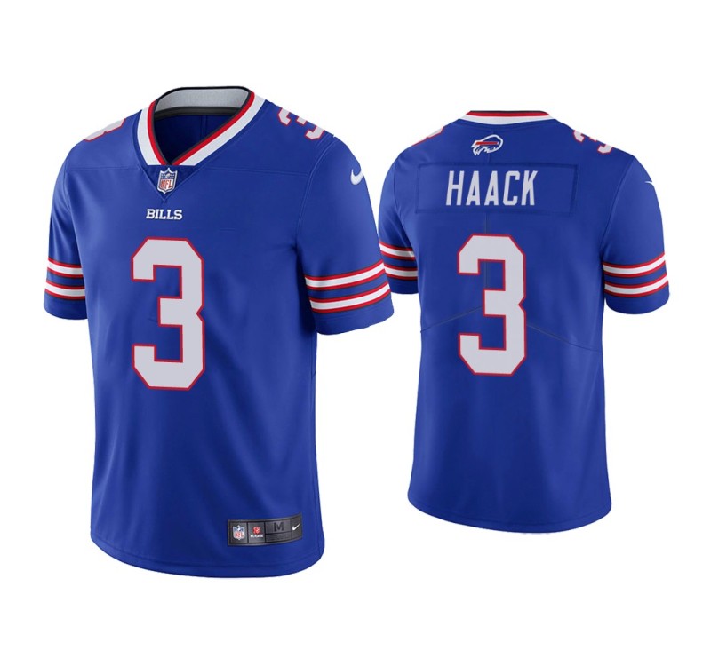 Rock the look of your favorite squad when you wear the Buffalo Bills #3 Matt Haack Vapor Limited Royal Jersey. It features a comfortable polyester design with quality Buffalo Bills and Matt Haack embroidered graphics that will quickly make this Matt Haack Jersey one of your favorites.