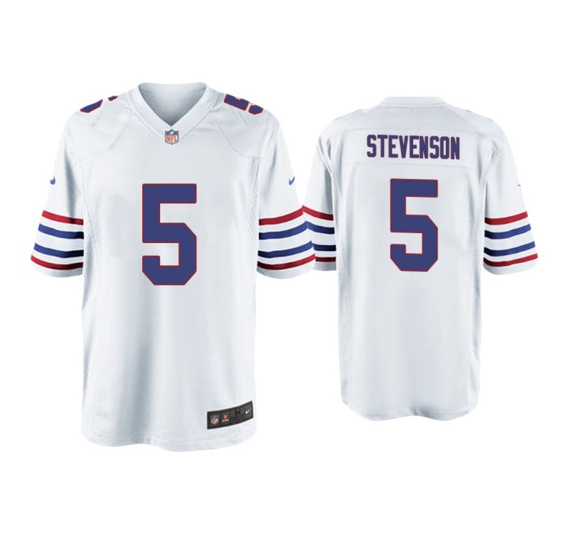 Let everyone know where your loyalty lies with the Buffalo Bills #5 Marquez Stevenson White Alternate Game Jersey. The graphics on this jersey will set you apart as a hardcore Buffalo Bills fan. No one will be able to deny you're the #1 Buffalo Bills Marquez Stevenson fan when you cheer for your team in this top.