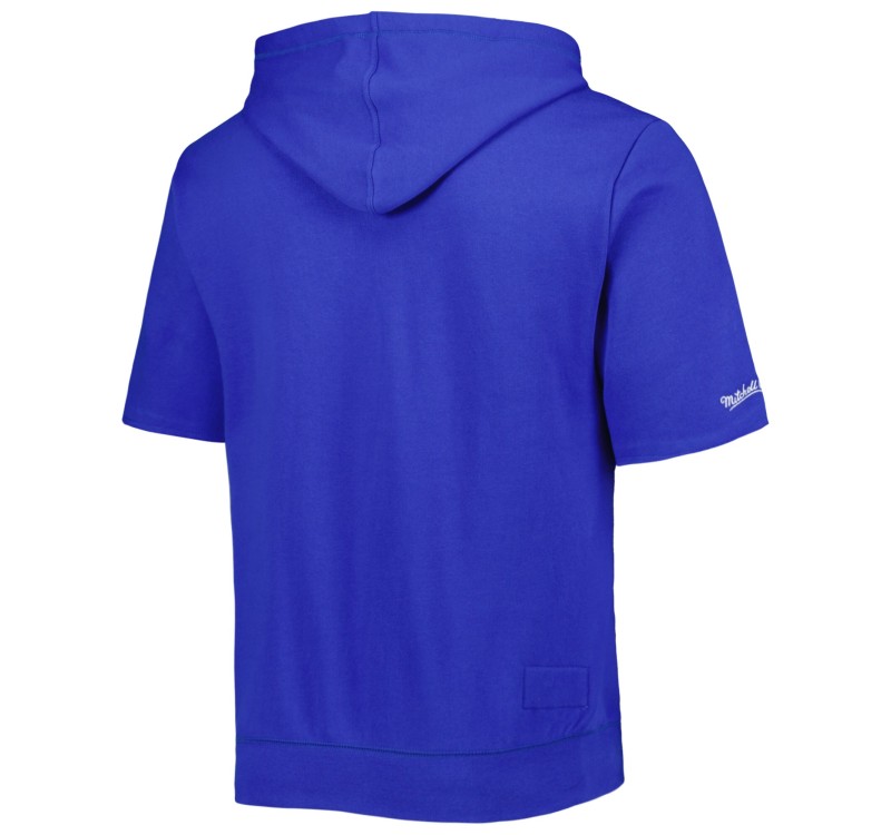 Layer up with a bold display of your Buffalo Bills fandom by adding this Mitchell & Ness short sleeve hoodie to your gear collection. Its washed fabric offers a distressed, worn-in look that accentuates the Buffalo Bills graphics, making your appreciation for your favorites unmistakable. The hoodie's midweight design, fleece lining and short sleeves also give you the perfect combination of coverage and comfort.Brand: Mitchell & Ness Imported Embroidered graphics Fleece lining Front pouch pocket Hood with drawstring Midweight hoodie suitable for moderate temperatures Pullover Raw edge sleeve hem Screen print wordmark Washed fabric Material: 80% Cotton/20% Polyester Short sleeve Machine wash, tumble dry low Pullover Hooded Officially licensed